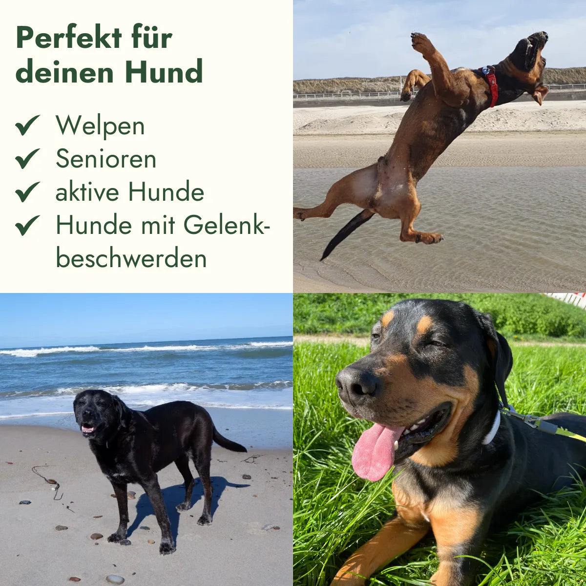 Setze auf die natürliche Unterstützung für die Gelenke deines Hundes und schenke ihm ein aktives, glückliches Leben.